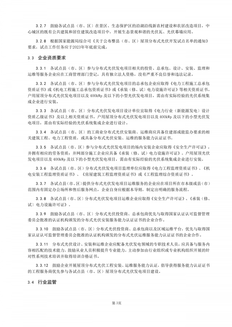 各試點縣(市、區(qū))的工商業(yè)分布式光伏安裝商、運維商應具備住建部或能監(jiān)辦要求的相關建筑工程、電力工程資質(zhì),或具備分布式光伏安裝、運維的服務能力認證證書。