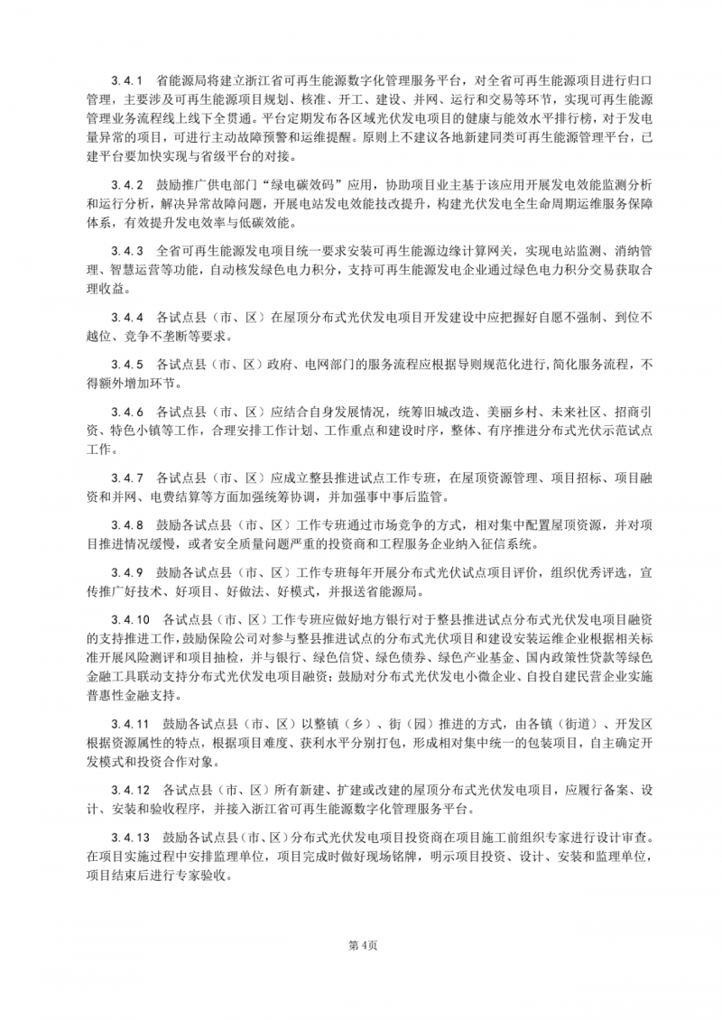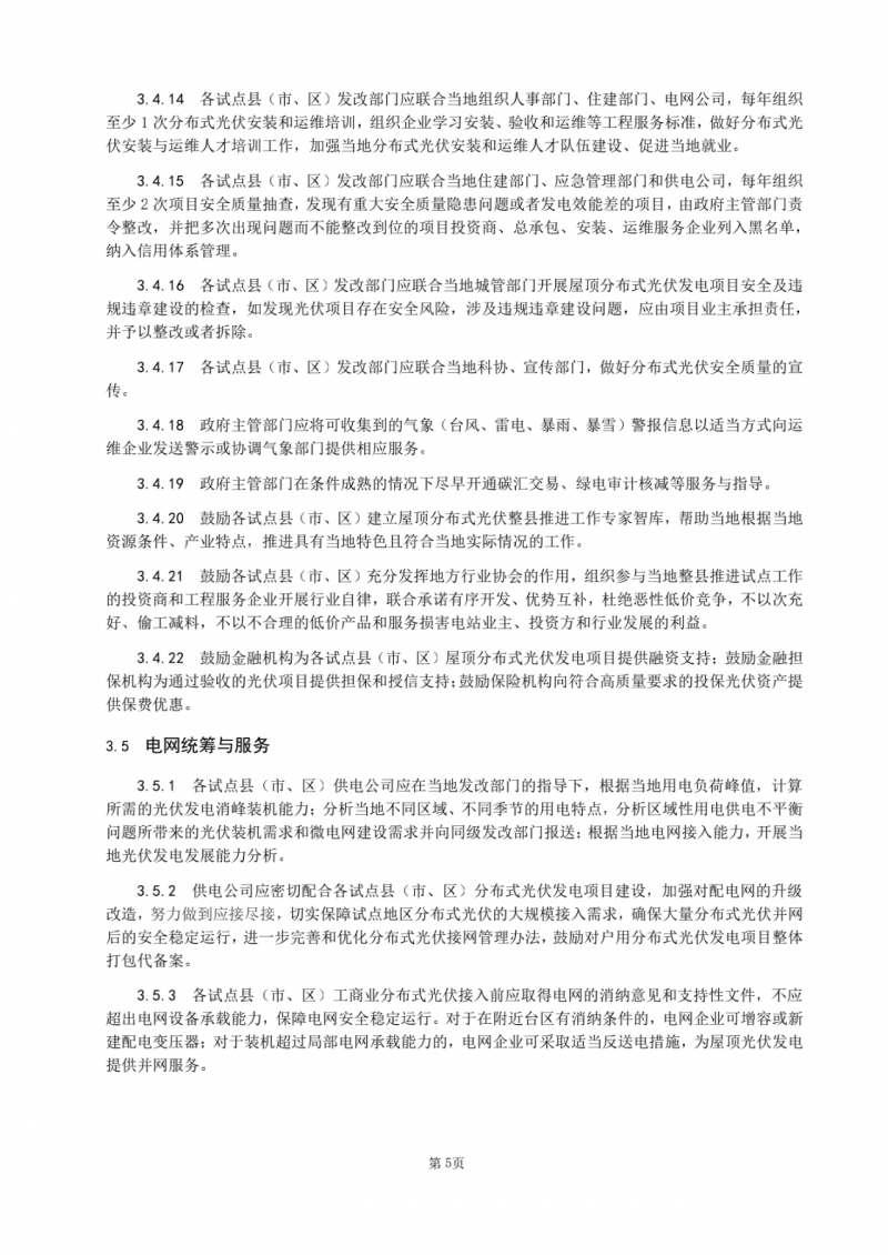 各試點縣(市、區(qū))應成立整縣推進試點工作專班,在屋頂資源管理、項目招標、項目融資和并網(wǎng)、電費結算等方面加強統(tǒng)籌協(xié)調(diào),并加強事中事后監(jiān)管。