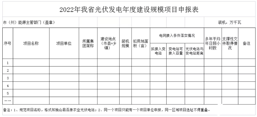為積極貫徹落實(shí)國家“碳達(dá)峰、碳中和”工作目標(biāo),實(shí)現(xiàn)我省能源產(chǎn)業(yè)轉(zhuǎn)型、高質(zhì)量發(fā)展,有序推進(jìn)新能源項目建設(shè),根據(jù)《貴州省風(fēng)電光伏發(fā)電項目管理暫行辦法》,現(xiàn)開展我省2022年風(fēng)電光伏發(fā)電年度建設(shè)規(guī)模項目申報工作,有關(guān)事項通知如下: