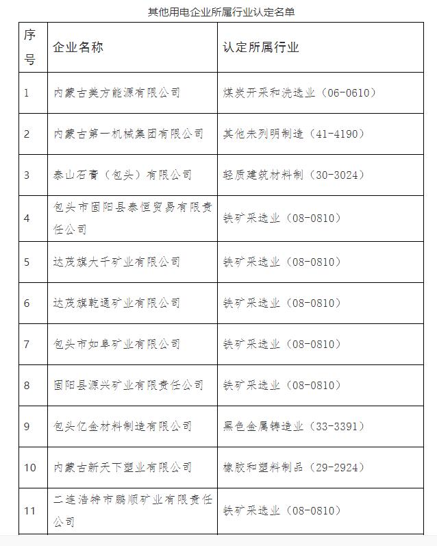 按照《自治區(qū)工信廳關(guān)于同意內(nèi)蒙古電力交易市場(chǎng)主體年度信息核查工作的通知》(內(nèi)工信經(jīng)運(yùn)字〔2020〕320號(hào))文件要求,內(nèi)蒙古電力(集團(tuán))有限責(zé)任公司于2020年11月-2021年6月期間開展了信息核查工作,經(jīng)核查發(fā)現(xiàn)部分企業(yè)市場(chǎng)準(zhǔn)入產(chǎn)品信息與實(shí)際實(shí)際生產(chǎn)情況明顯不符。為進(jìn)一步規(guī)范市場(chǎng)主體信息管理,降低企業(yè)轉(zhuǎn)產(chǎn)變更引發(fā)的市場(chǎng)風(fēng)險(xiǎn)與矛盾,及時(shí)處理準(zhǔn)入信息與實(shí)際生產(chǎn)不符的問題,保障電力市場(chǎng)平穩(wěn)有序運(yùn)行,各盟市工信部門對(duì)信息核查問題用電企業(yè)所屬行業(yè)進(jìn)行了重新認(rèn)定,現(xiàn)將盟市上報(bào)的企業(yè)認(rèn)定名單予以公示(見附件)。如有異議,可通過來訪、來函、來電等形式向我廳反映。