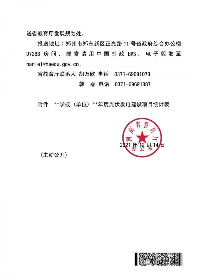 12月14日,河南省教育廳辦公室關(guān)于開(kāi)發(fā)利用學(xué)校屋頂進(jìn)行光伏發(fā)電的通知。河南省為貫徹落實(shí)國(guó)家“碳達(dá)峰、碳中和”戰(zhàn)略布局,強(qiáng)化“項(xiàng)目為王”理念,充分發(fā)揮學(xué)校示范引領(lǐng)作用,進(jìn)一步加快學(xué)校屋頂光伏發(fā)電開(kāi)發(fā)工作,推動(dòng)“陽(yáng)光校園”工程落地見(jiàn)效。