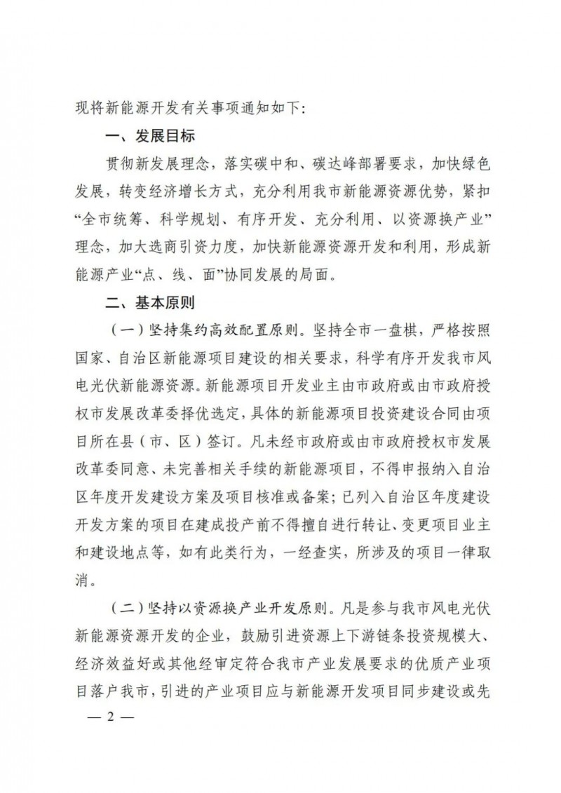 光伏領(lǐng)域:對已與項目所在地政府簽訂投資合作協(xié)議的企業(yè),應(yīng)自簽訂協(xié)議之日起3個月內(nèi),做好用地管理,完成可研報告、系統(tǒng)接入分析、各部門選址意見等前期工作,確保達到向自治區(qū)申報建設(shè)指標(biāo)條件,否則原開發(fā)資源協(xié)議失效。