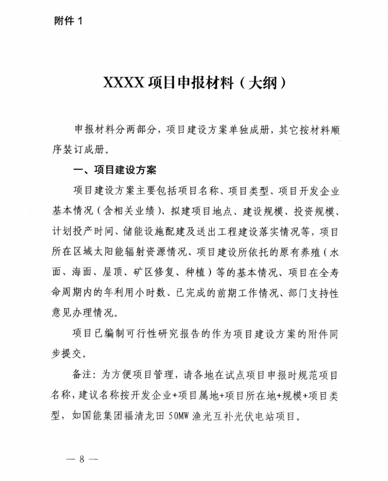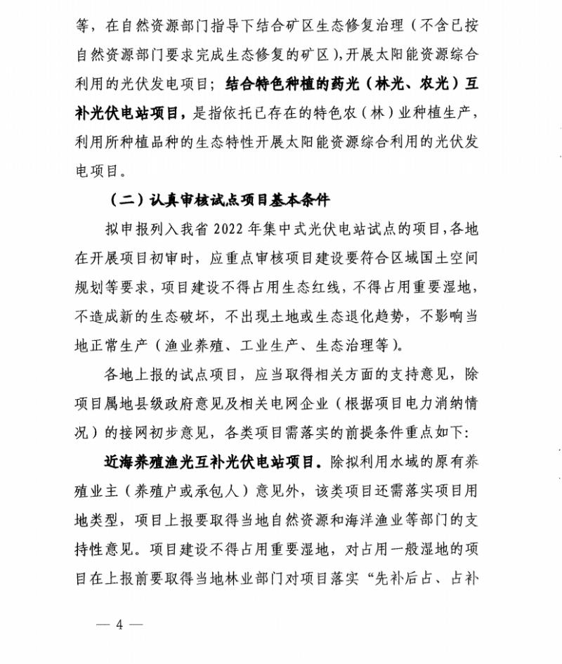 試點(diǎn)項(xiàng)目的建設(shè)規(guī)模要求,各地申報(bào)10萬(wàn)千瓦及以上的大型集中光伏電站項(xiàng)目。對(duì)于占用一般濕地的項(xiàng)目,其投資規(guī)模必須符合福建省重點(diǎn)項(xiàng)目的申報(bào)條件。