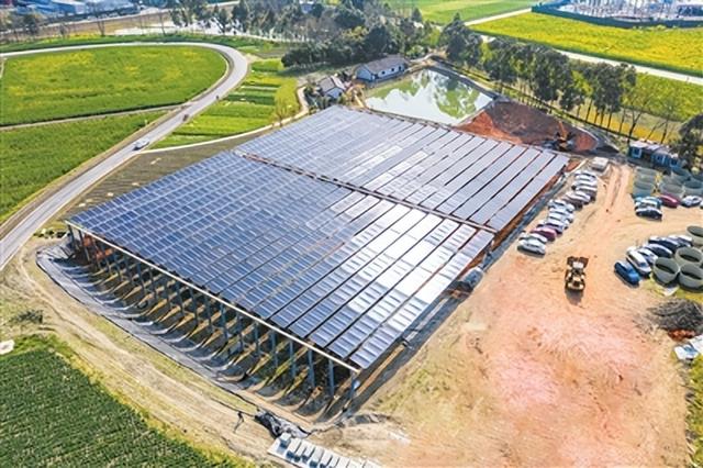 記者看到,在魚塘旁邊還有一座兩層樓的建筑正在進行外立面裝修。據(jù)了解,這是“漁光一體”項目的配套設(shè)施,這棟綜合樓包含“鄉(xiāng)村振興+碳中和”科普教育展示基地、多功能會議室、頂層觀景平臺等,建成后將集科普展示、會務(wù)、觀景、研學(xué)等功能于一體。天府農(nóng)博園管委會相關(guān)負責(zé)人表示,項目建成運營后,將成為開展碳中和與鄉(xiāng)村振興科普研學(xué)活動的基地,讓更多市民、游客近距離感受光伏發(fā)電與智慧養(yǎng)魚是怎樣結(jié)合在一起的。成都日報記者 李娟
