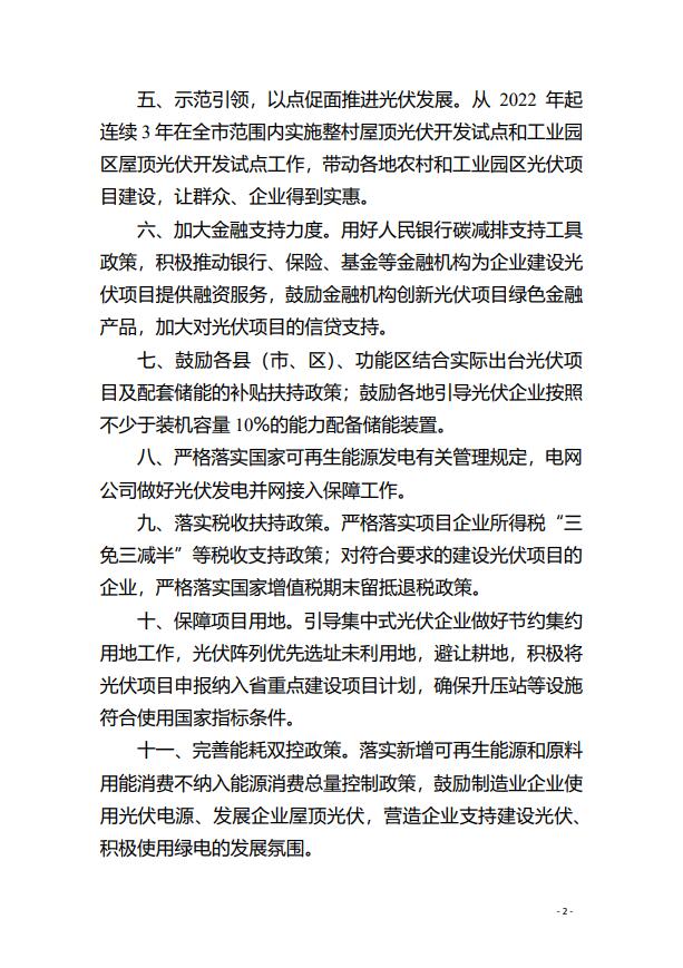 鼓勵各縣(市、區(qū))、功能區(qū)結合實際出臺光伏項目及配套儲能的補貼扶持政策;鼓勵各地引導光伏企業(yè)按照不少于裝機容量10%的能力配備儲能裝置。