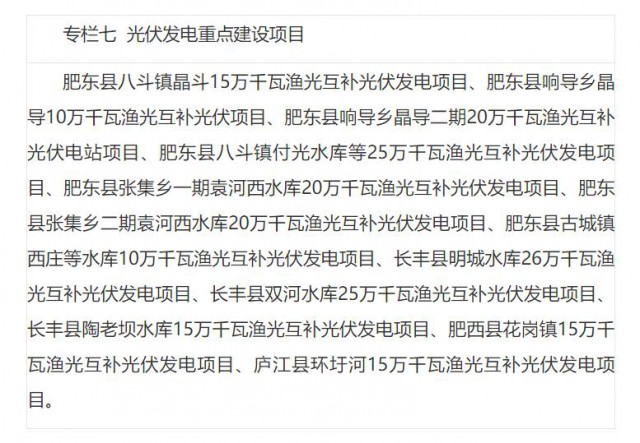 具體措施方面,要求大力發(fā)展光伏發(fā)電?!笆奈濉逼陂g,全市將不斷提高光伏發(fā)電能源效率和提升消費終端就地消納水平。堅持集中開發(fā)與分布開發(fā)并舉,充分利用水面資源開展?jié)O光互補光伏項目,利用荒山荒坡開展農光互補項目;鼓勵具備條件的縣(市、區(qū))開展整縣(市、區(qū))屋頂分布式光伏建設,引導工商業(yè)單位安裝分布式光伏發(fā)電系統(tǒng),鼓勵城鎮(zhèn)和新農村建設分布式光伏發(fā)電,加快光伏建筑一體化利用模式推廣。鼓勵開展光伏+5G基站、光儲充、光伏制氫等新的技術和模式應用推廣?!笆奈濉毙略龉夥l(fā)電186萬千瓦以上,集中式光伏主要分布在肥東、長豐、廬江、巢湖等地,分布式光伏主要分布在全市各工業(yè)園區(qū)、商業(yè)區(qū)和住宅區(qū)。