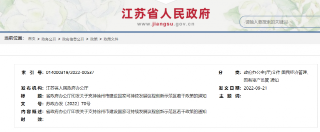 省政府辦公廳印發(fā)關(guān)于支持徐州市建設國家可持續(xù)發(fā)展議程創(chuàng)新示范區(qū)若干政策的通知