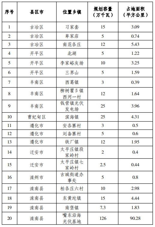重點任務在南部曹妃甸、灤南、樂亭、海港等縣區(qū),結合水產養(yǎng)殖業(yè)、農業(yè)、鹽業(yè)等既有產業(yè),規(guī)劃建設總量500萬千瓦漁光互補、鹽光互補基地項目;在北部玉田、遵化、遷西、遷安、灤州等縣(市),利用荒山荒坡,規(guī)劃建設總量100萬千瓦集中式光伏發(fā)電項目。