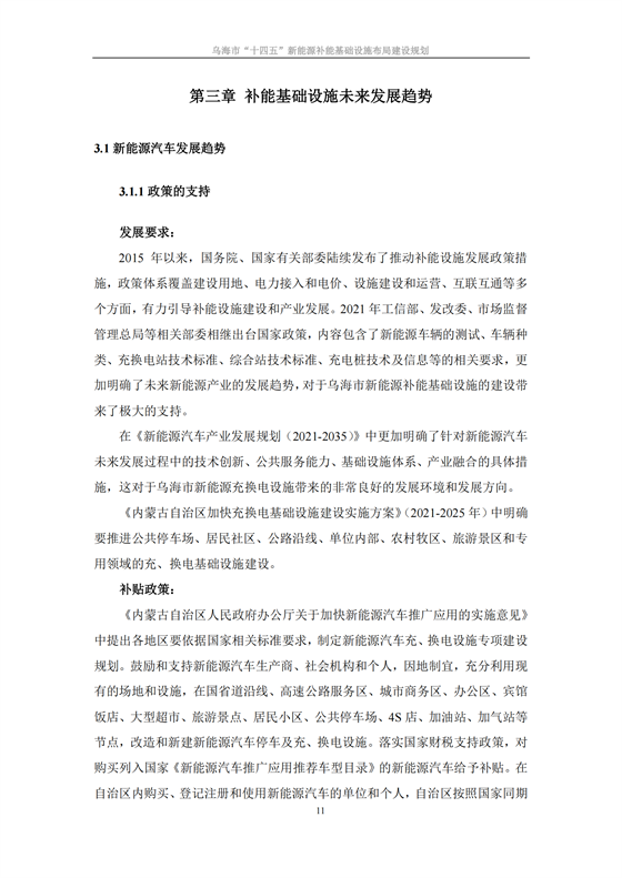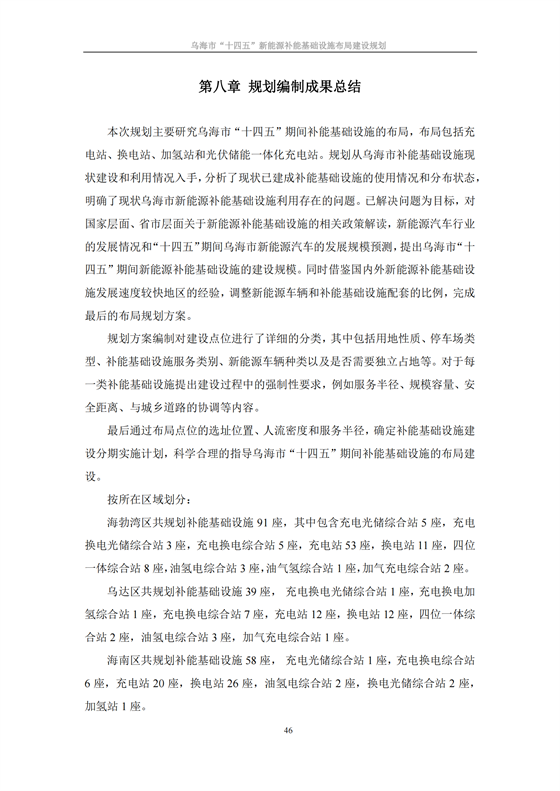 日前,內(nèi)蒙古自治區(qū)烏海市能源局印發(fā)《烏海市“十四五”新能源補(bǔ)能基礎(chǔ)設(shè)施布局建設(shè)規(guī)劃》,《規(guī)劃》提出發(fā)展目標(biāo):建設(shè)補(bǔ)能基礎(chǔ)設(shè)施共計(jì)194座,包含11座四位一體綜合站,加油加氫充電綜合站8座,加油加氣加氫綜合站1座,充電換電綜合站18座,充電換電加氫綜合站2座,充電換電光伏儲(chǔ)能綜合站4座,充電光伏儲(chǔ)能綜合站6座,換電光儲(chǔ)綜合站2座,加氣充電綜合站3座,充電站86座,換電站52座,加氫站1座。