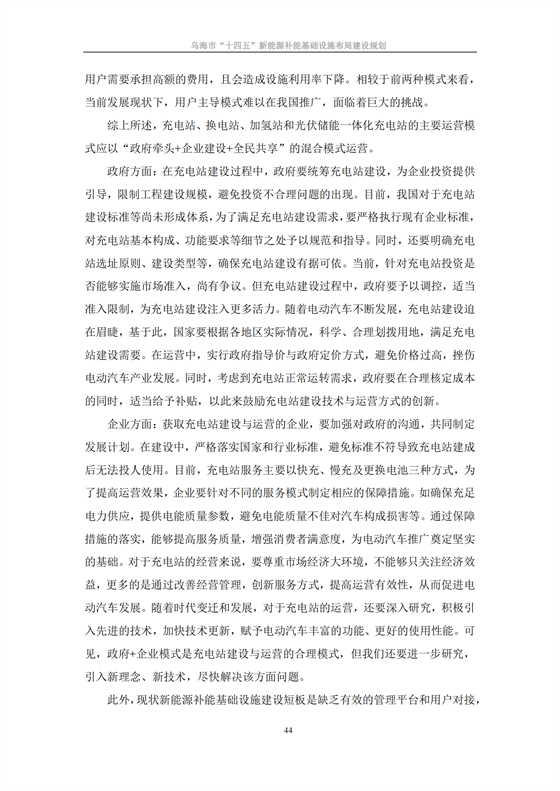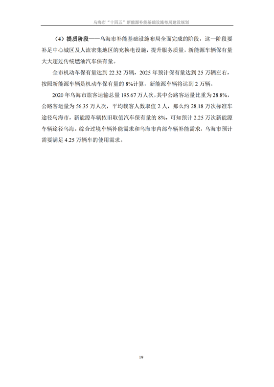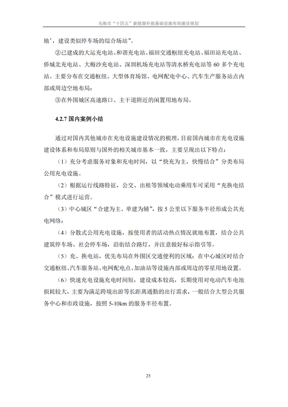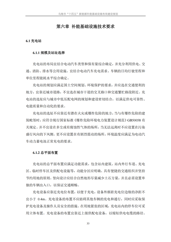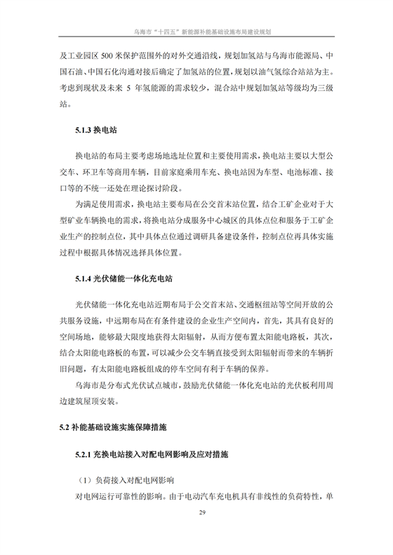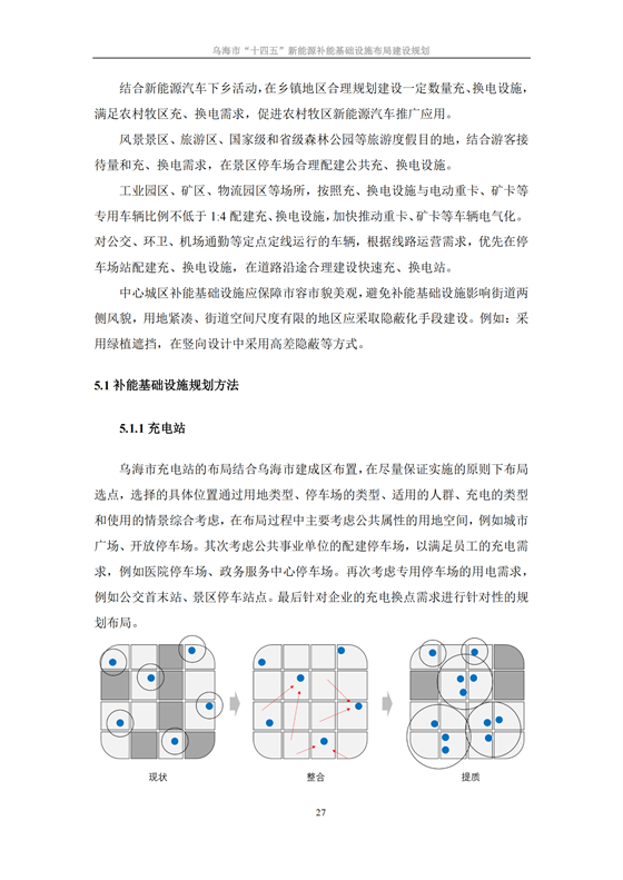 在“光伏儲(chǔ)能一體化充電站”方面,《規(guī)劃》提出,光伏儲(chǔ)能一體化充電站近期布局于公交首末站、交通樞紐站等空間開放的公共服務(wù)設(shè)施,中遠(yuǎn)期布局在有條件建設(shè)的企業(yè)生產(chǎn)空間內(nèi),首先,其具有良好的空間場(chǎng)地,能夠最大限度地獲得太陽輻射,從而方便布置太陽能電路板,其次,結(jié)合太陽能電路板的布置,可以減少公交車輛直接受到太陽輻射而帶來的車輛折舊問題,有太陽能電路板組成的停車空間有利于車輛的保養(yǎng)。 烏海市是分布式光伏試點(diǎn)城市,鼓勵(lì)光伏儲(chǔ)能一體化充電站的光伏板利用周邊建筑屋頂安裝。