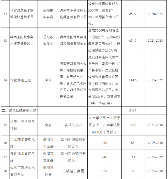 二、支撐電源建設(shè)工程?;痣娋哂姓{(diào)節(jié)性強(qiáng)、可靠性高等優(yōu)勢(shì),是滿足經(jīng)濟(jì)社會(huì)發(fā)展用電需求、實(shí)現(xiàn)雙碳目標(biāo)的重要支撐電源。重點(diǎn)推進(jìn)華電平江電廠,工程位于湖南省岳陽(yáng)市平江縣余坪鎮(zhèn),本期建設(shè)2×100萬(wàn)千瓦超超臨界燃煤發(fā)電機(jī)組,同步建設(shè)超低排放環(huán)保設(shè)施,配套建設(shè)鐵路專用線,總投資73.79億元。2020年12月5日主體工程正式開(kāi)工,確保2022年內(nèi)正式投產(chǎn)。工程建成投產(chǎn)后,將為全省提供200萬(wàn)千瓦穩(wěn)定供應(yīng)能力,是打贏2022年迎峰度冬電力保供任務(wù)的重點(diǎn)工程。同時(shí),加快國(guó)能岳陽(yáng)電廠建設(shè),爭(zhēng)取2023年底前投產(chǎn)。積極推進(jìn)長(zhǎng)安益陽(yáng)電廠、大唐華銀株洲電廠、陜煤石門電廠3個(gè)煤電項(xiàng)目和湘投衡東燃?xì)怆姀S、華電長(zhǎng)沙燃?xì)怆姀S、華能湘陰燃?xì)怆姀S3個(gè)氣電項(xiàng)目的前期工作,爭(zhēng)取2022年內(nèi)全部開(kāi)工建設(shè)、“十四五”全部建成投產(chǎn),確保2025年全省支撐性煤電和調(diào)峰性氣電裝機(jī)規(guī)模達(dá)到3300萬(wàn)千瓦左右。