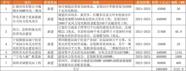 近期,固原市人民政府辦公室印發(fā)固原市自然資源保護和利用“十四五”規(guī)劃的通知。根據(jù)光伏們查詢,在固原市自然資源保護和利用“十四五”規(guī)劃建設(shè)項目庫中,有關(guān)清潔能源產(chǎn)業(yè)的項目共10個。其中包括光伏、風(fēng)電、儲能的項目共7個,合計新能源新建規(guī)模3152.9MW,總投資金額166億元。具體項目名單如下: