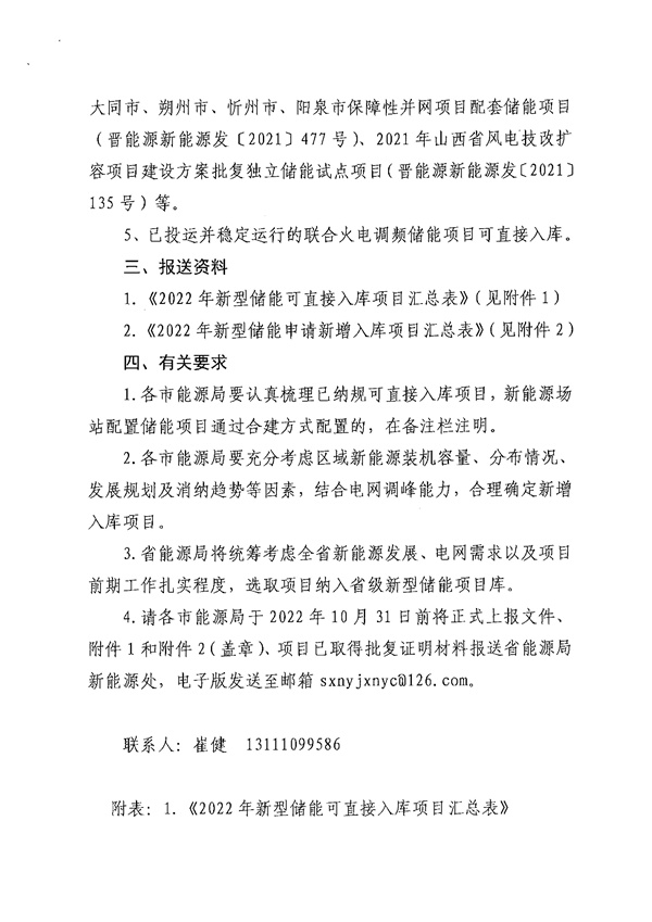 請(qǐng)各企業(yè)認(rèn)真閱讀省能源局通知內(nèi)容,并于10月26日前將《2022年新型儲(chǔ)能可直接入庫(kù)項(xiàng)目匯總表》、《2022年新型儲(chǔ)能申請(qǐng)新增入庫(kù)項(xiàng)目匯總表》及相關(guān)證明材料的電子版(加蓋企業(yè)公章的PDF版和可編輯Excel版)發(fā)送至郵箱:[email protected],逾期不再受理。
