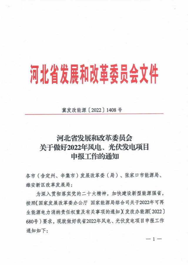 11月4日,河北省發(fā)展和改革委員會(huì)下發(fā)《關(guān)于做好2022年風(fēng)電、光伏發(fā)電項(xiàng)目申報(bào)工作的通知》,正式啟動(dòng)2022年風(fēng)電、光伏發(fā)電項(xiàng)目申報(bào)工作。根據(jù)文件,