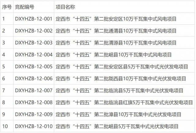 定西市“十四五”第二批風(fēng)光電項(xiàng)目競(jìng)爭(zhēng)性配置公告