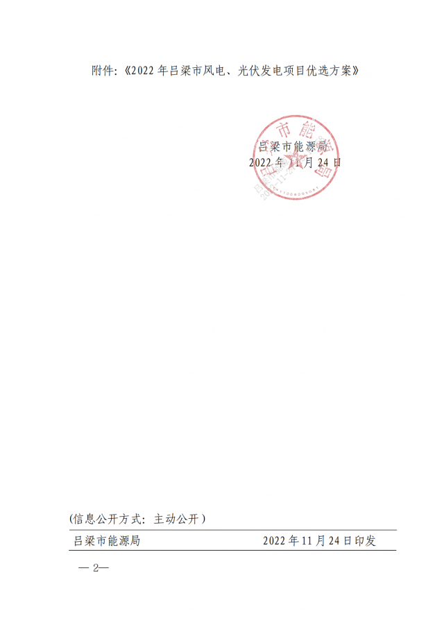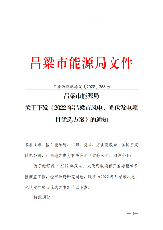 近日,山西呂梁市能源局發(fā)布關于《2022年呂梁市風電、光伏發(fā)電項目優(yōu)選方案》的通知。