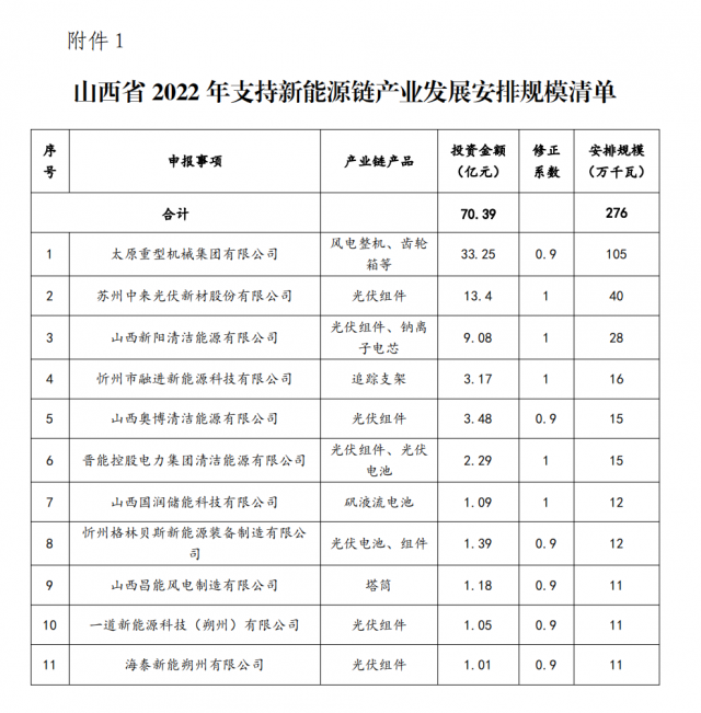 12月6日,山西省能源局發(fā)布《山西省2022年支持新能源產業(yè)發(fā)展風電光伏發(fā)電建設規(guī)模評審結果》。