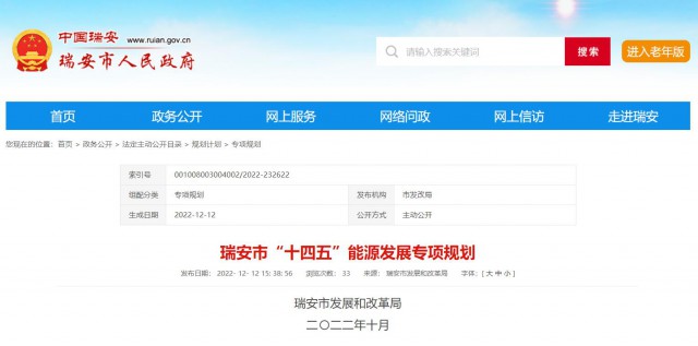 12月12日,浙江省瑞安市“十四五”能源發(fā)展專(zhuān)項(xiàng)規(guī)劃印發(fā)。