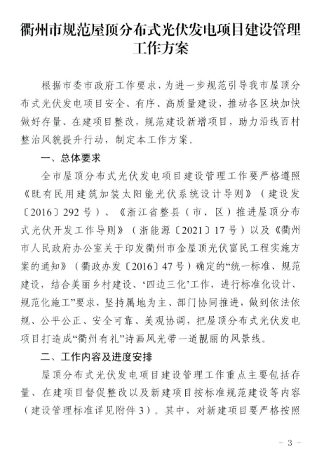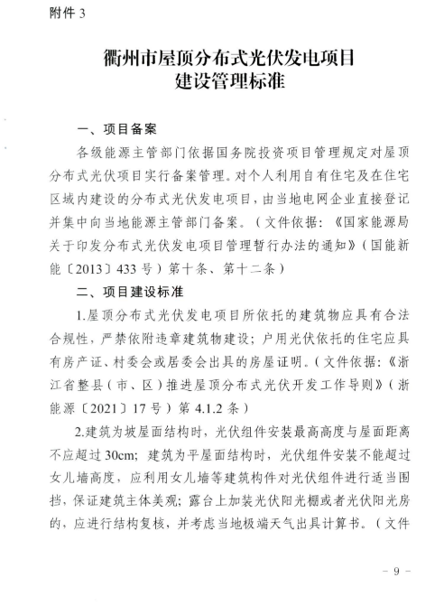《衢州市規(guī)范屋頂分布式光伏發(fā)電項目建設管理工作方案》