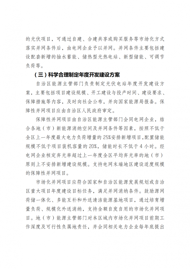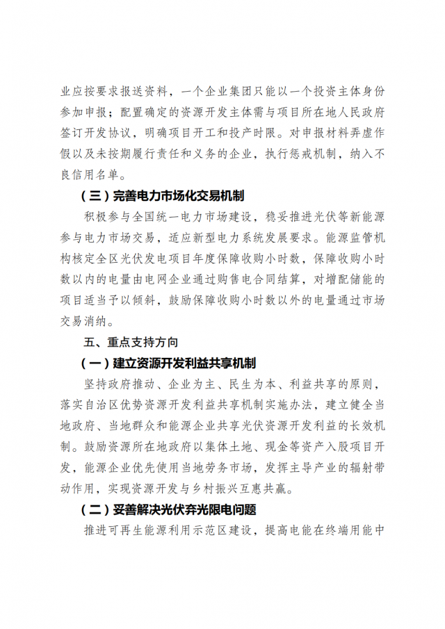 積極參與全國(guó)統(tǒng)一電力市場(chǎng)建設(shè),穩(wěn)妥推進(jìn)光伏等新能源參與電力市場(chǎng)交易,適應(yīng)新型電力系統(tǒng)發(fā)展要求。能源監(jiān)管機(jī)構(gòu)核定全區(qū)光伏發(fā)電項(xiàng)目年度保障收購(gòu)小時(shí)數(shù),保障收購(gòu)小時(shí)數(shù)以內(nèi)的電量由電網(wǎng)企業(yè)通過購(gòu)售電合同結(jié)算,對(duì)增配儲(chǔ)能的項(xiàng)目適當(dāng)予以傾斜,鼓勵(lì)保障收購(gòu)小時(shí)數(shù)以外的電量通過市場(chǎng)交易消納。