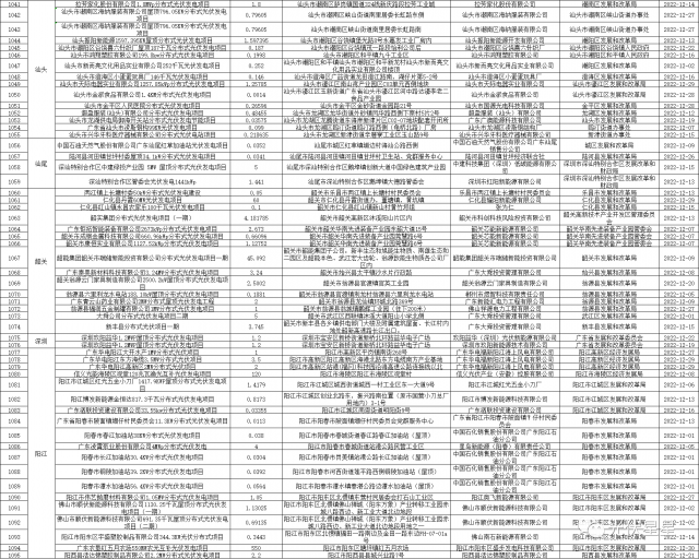 據(jù)廣東省投資備案平臺上統(tǒng)計,2022年12月廣東省光伏項目備案1381個,總?cè)萘考s5.3GW。其中地面光伏項目19個,總?cè)萘繛?720MW,其中湛江占5個,總?cè)萘?220MW,陽江、清遠(yuǎn)、潮州皆超600MW,最大容量地面光伏項目為潮州項目600MW。