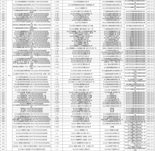 分布式光伏項目備案1.58GW,其中503MW為整縣(鎮(zhèn))開發(fā)項目。梅州由首華恒邦投資建設(shè)大埔縣湖寮鎮(zhèn)、青溪鎮(zhèn)、三河鎮(zhèn)、銀江鎮(zhèn)、洲瑞鎮(zhèn)、光德鎮(zhèn)、桃源鎮(zhèn)、百侯鎮(zhèn)等14個鎮(zhèn)戶用屋頂,共100MW;湛江由中電建投資建設(shè)河唇鎮(zhèn)、石頸鎮(zhèn)、石嶺鎮(zhèn)等各鎮(zhèn)戶用屋頂,華能和廣東電力投資建設(shè)良垌鎮(zhèn)戶用屋頂,總?cè)萘抗?17MW。