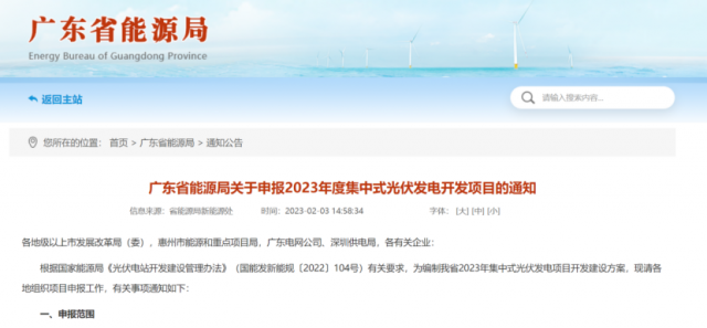 廣東省能源局關(guān)于申報(bào)2023年度集中式光伏發(fā)電開發(fā)項(xiàng)目的通知