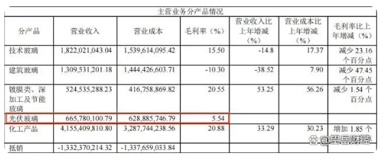 不過從財(cái)務(wù)數(shù)據(jù)來看,金晶科技光伏玻璃的營(yíng)業(yè)收入僅6.66億元,占整個(gè)營(yíng)業(yè)收入的比例8.9%,不足十分之一,而毛利率更是僅有5.54%,遠(yuǎn)低于技術(shù)玻璃、鍍膜玻璃以及純堿等產(chǎn)品。