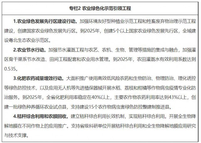 5.推廣農(nóng)業(yè)清潔生產(chǎn)新模式。落實百縣千鎮(zhèn)萬村高質量發(fā)展各項要求,加快推進農(nóng)業(yè)清潔生產(chǎn)。加快構建種植業(yè)、畜禽養(yǎng)殖業(yè)、水產(chǎn)養(yǎng)殖業(yè)清潔生產(chǎn)技術體系,實施糧經(jīng)飼統(tǒng)籌、種養(yǎng)加結合、農(nóng)林牧漁融合發(fā)展等一體化發(fā)展模式。支持我省預制菜產(chǎn)業(yè)高質量發(fā)展。大力發(fā)展綠色低碳循環(huán)農(nóng)業(yè),推進農(nóng)光互補、“光伏+設施農(nóng)業(yè)”、“海上風電+海洋牧場”等低碳農(nóng)業(yè)模式。增加農(nóng)村清潔能源供應,推動農(nóng)村生物質能綜合利用。發(fā)展林業(yè)循環(huán)經(jīng)濟,培育林業(yè)龍頭企業(yè),建設林草中藥材、油茶、竹等具有廣東特色的林業(yè)產(chǎn)業(yè)發(fā)展基地,積極創(chuàng)建國家現(xiàn)代林業(yè)產(chǎn)業(yè)示范園區(qū),實施森林生態(tài)標志產(chǎn)品建設工程。以現(xiàn)代農(nóng)業(yè)產(chǎn)業(yè)園、農(nóng)林業(yè)龍頭企業(yè)等為重點,深入推行農(nóng)業(yè)清潔生產(chǎn),形成一批可推廣、可復制的典型案例。