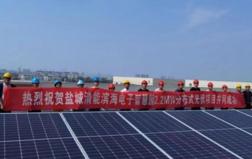 5月31日,由鹽城清能公司投資建設(shè)的濱海智慧園2.2兆瓦屋頂光伏項目正式并網(wǎng)發(fā)電。