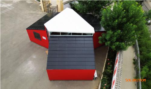 值得一提的是,此次“方寸空間微型幼兒園”為適應(yīng)溫帶半干旱氣候地區(qū)環(huán)境,設(shè)計(jì)聚落型房屋,三個(gè)單坡頂圍合中庭,外圍空間布局幼兒教學(xué)及活動(dòng)空間,中間高聳采光空間成為舞臺(tái),三個(gè)房屋之間設(shè)計(jì)通高玻璃隔斷,其中南面成為主入口,而另外兩個(gè)方向作為通風(fēng)口,中庭不僅作為幼兒很好的展示游樂(lè)場(chǎng)所,也可減少白天刺眼陽(yáng)光與熱量。房屋四面減少窗戶以增強(qiáng)保溫隔熱,中庭設(shè)計(jì)高窗及垂直條形開(kāi)口,作為主要采光通風(fēng),天氣好時(shí)可將門打開(kāi),提供良好通風(fēng)。“方寸空間微型幼兒園”做到了在陽(yáng)光明媚的日子里,光伏瓦屋面提供室內(nèi)外所有的電力需求,用不完的電能自動(dòng)進(jìn)入儲(chǔ)能電池供應(yīng)陰雨天和夜間照明及電器用電。“方寸空間微型幼兒園”屋面采用可完全替代傳統(tǒng)瓦片的光伏瓦片,既解決以前光伏板左右搭接處滲漏隱患,又保證光伏瓦片搭接處平整,為學(xué)生們提供更好的學(xué)習(xí)環(huán)境。學(xué)校還可以把用不完的電賣給國(guó)家電網(wǎng),收入可用于進(jìn)一步改善學(xué)校的環(huán)境。