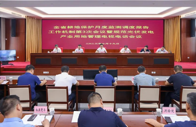 7月19日,省自然資源廳召開全省耕地保護月度監(jiān)測調(diào)度報告工作機制第三次會議暨規(guī)范光伏發(fā)電產(chǎn)業(yè)用地管理電視電話會議。會議傳達學習全國生態(tài)環(huán)境保護會議精神,聽取相關市規(guī)劃和自然資源局關于落實耕地保護月度監(jiān)測調(diào)度報告工作機制以及問題整改工作最新進展情況的匯報,通報近期全省耕地保護月度監(jiān)測違法用地典型問題和全省光伏發(fā)電產(chǎn)業(yè)用地管理情況,并就落實耕地保護月度監(jiān)測調(diào)度報告工作機制相關工作和立即開展全省光伏發(fā)電項目集中整治行動進行安排部署。