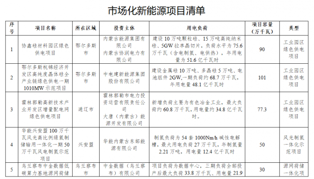 按照《內蒙古自治區(qū)工業(yè)園區(qū)綠色供電項目實施細則(2022年版)》《內蒙古自治區(qū)風光制氫一體化項目實施細則(2022年版)》《內蒙古自治區(qū)源網荷儲一體化項目實施細則(2022年版)》要求,我局組織專家對各盟市申報的5個市場化新能源項目方案進行了評估,5個項目均納入市場化新能源項目清單,共配建新能源規(guī)模348.3萬千瓦,其中風電259萬千瓦、光伏89.3萬千瓦。經報請自治區(qū)人民政府同意,現將市場化新能源項目清單印發(fā)你們,并將有關要求通知如下。