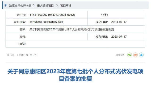 關(guān)于同意惠陽(yáng)區(qū)2023年度第七批個(gè)人分布式光伏發(fā)電項(xiàng)目備案的批復(fù)