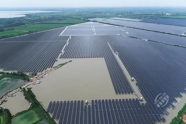 8月1日,位于赤壁市滄湖生態(tài)農(nóng)業(yè)開(kāi)發(fā)區(qū)的華潤(rùn)赤壁日曜350MW漁光互補(bǔ)光伏發(fā)電項(xiàng)目現(xiàn)場(chǎng),湖面上一片開(kāi)闊,整齊排列的光伏板熠熠生輝,景象宏偉壯觀(guān)。