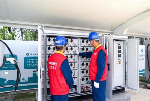 9月5日,國網(wǎng)四平供電公司員工在調(diào)試檢查光儲(chǔ)微電網(wǎng)儲(chǔ)能箱和配套設(shè)施。劉宏宇攝