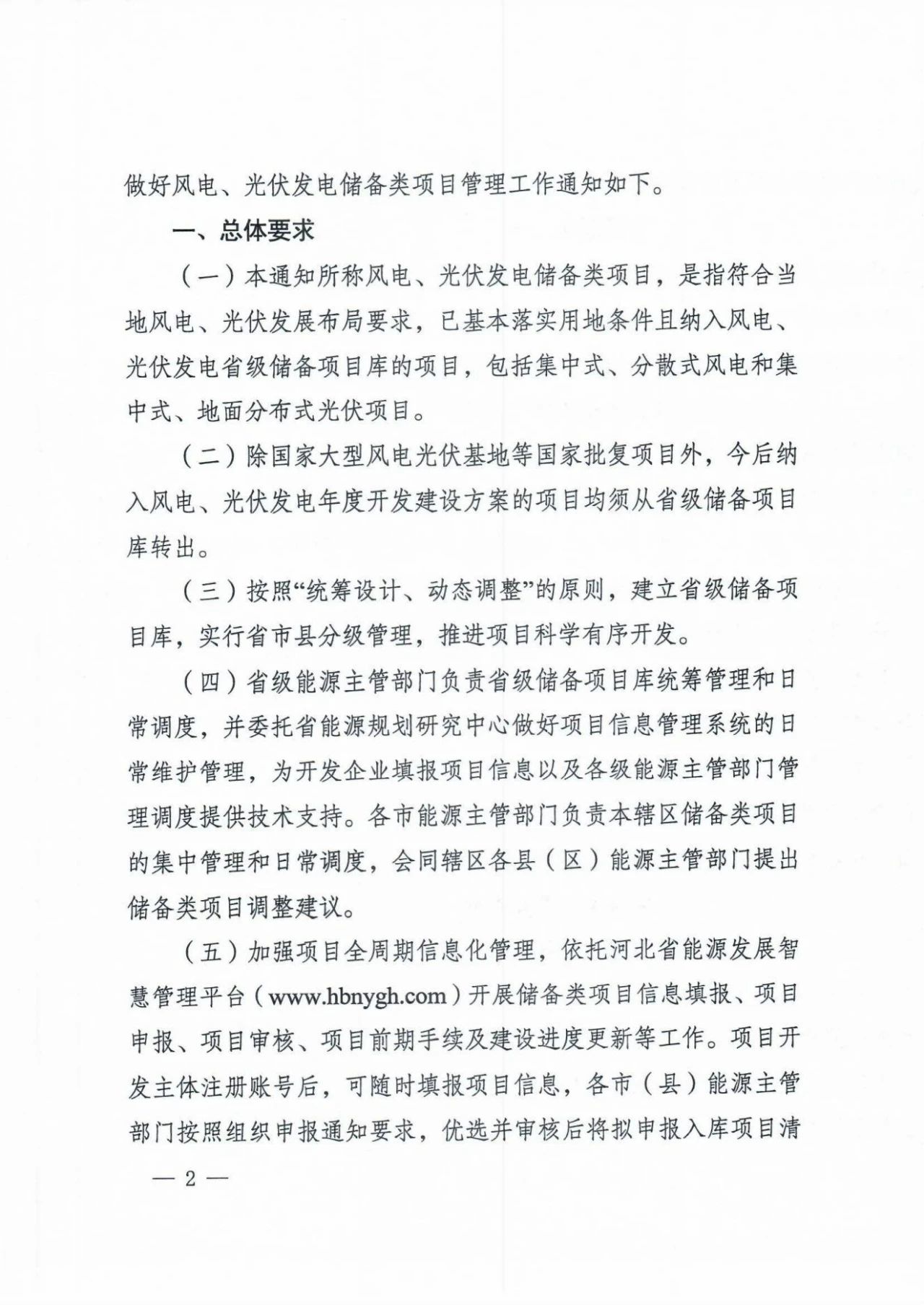 根據文件,通知涉及的儲備項目包括集中式、分散式風電和集中式、地面分布式光伏,要求已基本落實用地條件且納入省級儲備庫。除國家批復的風光基地外,今后河北省所有納入年度開發(fā)方案的項目均需從省級儲備庫轉出。