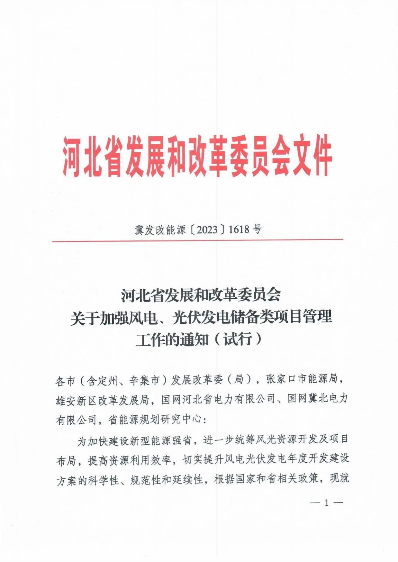 11月28日,河北省發(fā)改委印發(fā)《關于加強風電、光伏發(fā)電儲備類項目管理工作的通知(試行)》,進一步統(tǒng)籌風光資源開發(fā)以及項目管理。