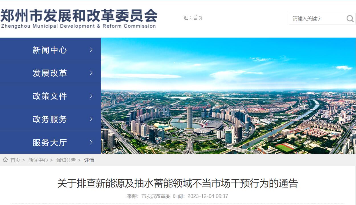 關(guān)于排查新能源及抽水蓄能領(lǐng)域不當市場干預行為的通告