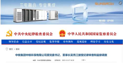 中央紀(jì)委國(guó)家監(jiān)委網(wǎng)站12月27日消息,據(jù)中核集團(tuán)紀(jì)檢監(jiān)察組、陜西省紀(jì)委監(jiān)委消息:中核集團(tuán)中核環(huán)保有限公司原黨委書記、董事長(zhǎng)吳秀江涉嫌嚴(yán)重違紀(jì)違法,目前正接受中核集團(tuán)紀(jì)檢監(jiān)察組和陜西省榆林市監(jiān)委紀(jì)律審查和監(jiān)察調(diào)查。