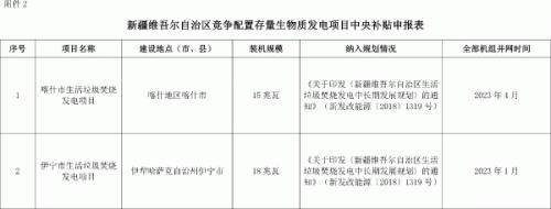 新疆維吾爾自治區(qū)發(fā)展和改革委員會關于擬申報中央補貼存量生物質(zhì)發(fā)電項目的公示