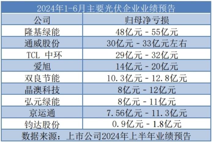 2024年上半年,光伏行業(yè)再次陷入深度困境,多家頭部企業(yè)發(fā)布的業(yè)績預告顯示,行業(yè)整體虧損嚴重,龍頭企業(yè)如隆基綠能、通威股份、TCL中環(huán)等均未能幸免。
