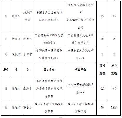 為提高我省新能源項(xiàng)目落地轉(zhuǎn)化率,加快推進(jìn)新能源建設(shè)進(jìn)度,我局組織各市能源局對(duì)2022年及之前取得批復(fù)且尚未全容量并網(wǎng)的風(fēng)電、光伏發(fā)電項(xiàng)目進(jìn)行了梳理。相關(guān)地市上報(bào)了擬廢止或核減規(guī)模項(xiàng)目清單,經(jīng)我局匯總,擬廢止渾源縣牛星堡分散式風(fēng)電等12個(gè)項(xiàng)目、規(guī)模91.981萬(wàn)千瓦,現(xiàn)予以公示。相關(guān)企業(yè)如有異議,請(qǐng)向相關(guān)市能源局提出書面意見(jiàn),并在公示期(5個(gè)工作日)內(nèi),由市能源局上報(bào)省能源局。