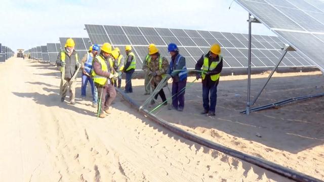 豐富的土地、光照資源以及強(qiáng)大的電網(wǎng)結(jié)構(gòu),為高臺(tái)縣發(fā)展光伏產(chǎn)業(yè)提供了得天獨(dú)厚的條件。走進(jìn)位于高崖子灘已經(jīng)建成并網(wǎng)的杭泰新能源有限公司20萬千瓦光伏發(fā)電項(xiàng)目現(xiàn)場(chǎng),一塊塊光伏板為荒坡披上了藍(lán)色“鎧甲”,在陽光的照耀下“波光粼粼”,工人們各司其職,整個(gè)電廠運(yùn)行平穩(wěn)。“我公司裝機(jī)容量是200兆瓦,配套建設(shè)40兆瓦/80兆瓦時(shí)的儲(chǔ)能電站一座,2024年截至目前的發(fā)電量是2.3億千瓦時(shí),預(yù)計(jì)2024年產(chǎn)值是3500萬元。”高臺(tái)杭泰200MW光伏電站站長陳祎介紹道。