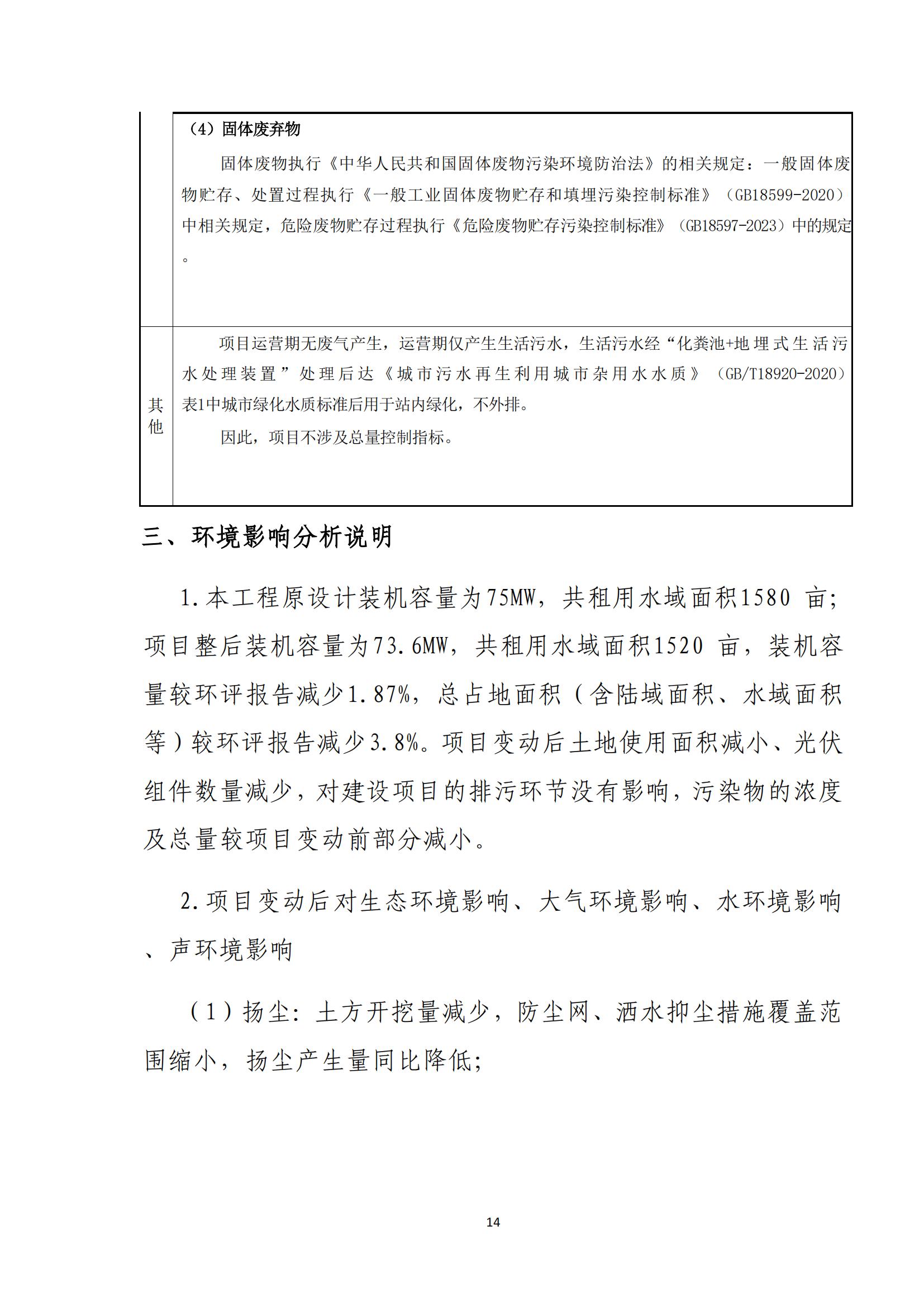 大唐宣州區(qū)貍橋鎮(zhèn)75MW漁光互補(bǔ)發(fā)電項(xiàng)目非重大變動(dòng)環(huán)境影響分析說明