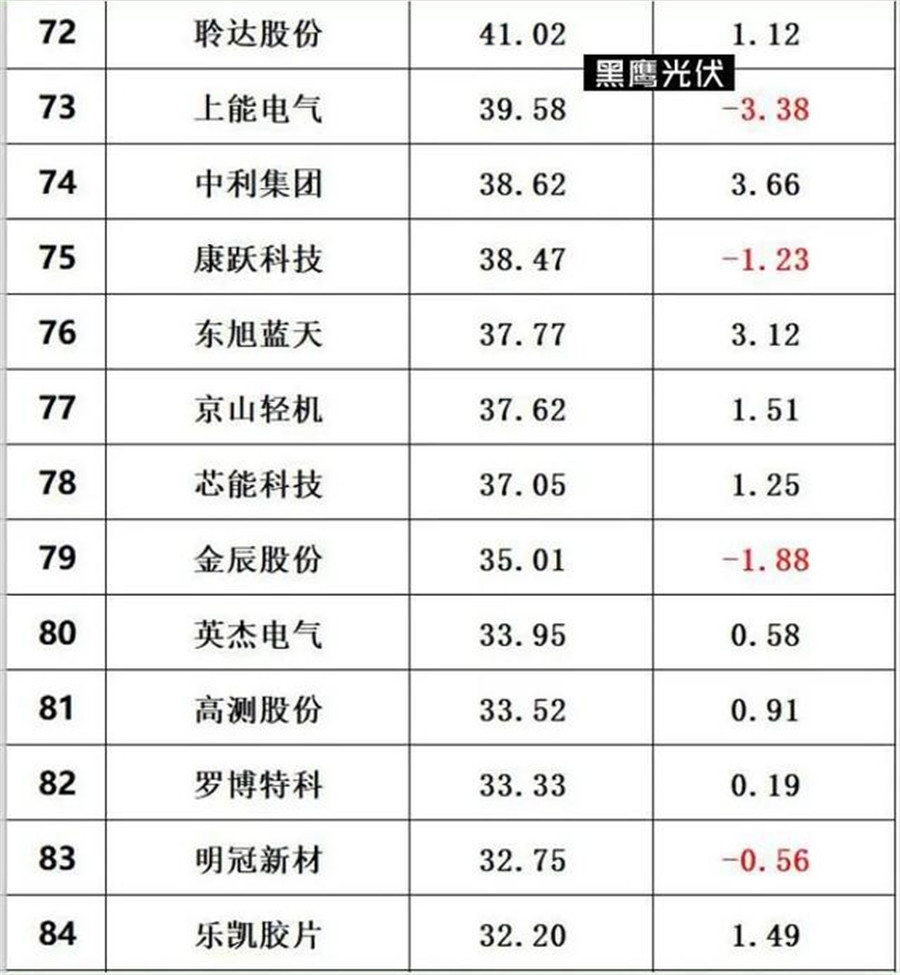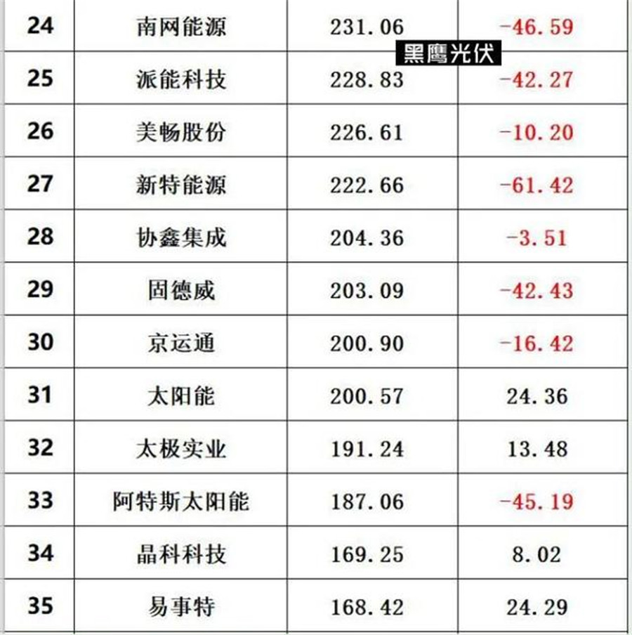 在黑鷹光伏整理出的最新的光伏總市值排行榜上,排在前15的企業(yè),總市值在過去幾個交易日里都出現(xiàn)了下跌