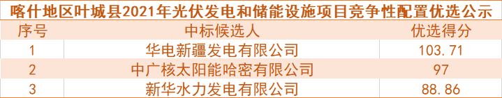 喀什地區(qū)葉城縣2021年50MW光伏發(fā)電和儲(chǔ)能設(shè)施項(xiàng)目競爭性配置優(yōu)選候選人如下: