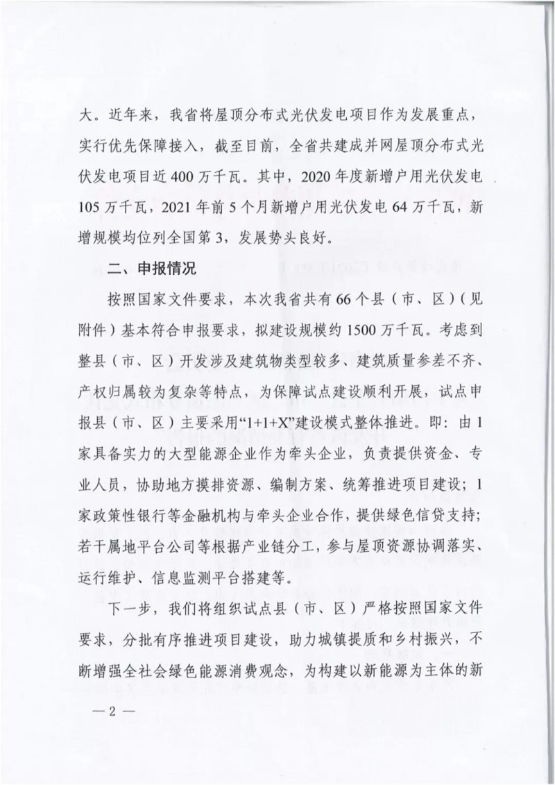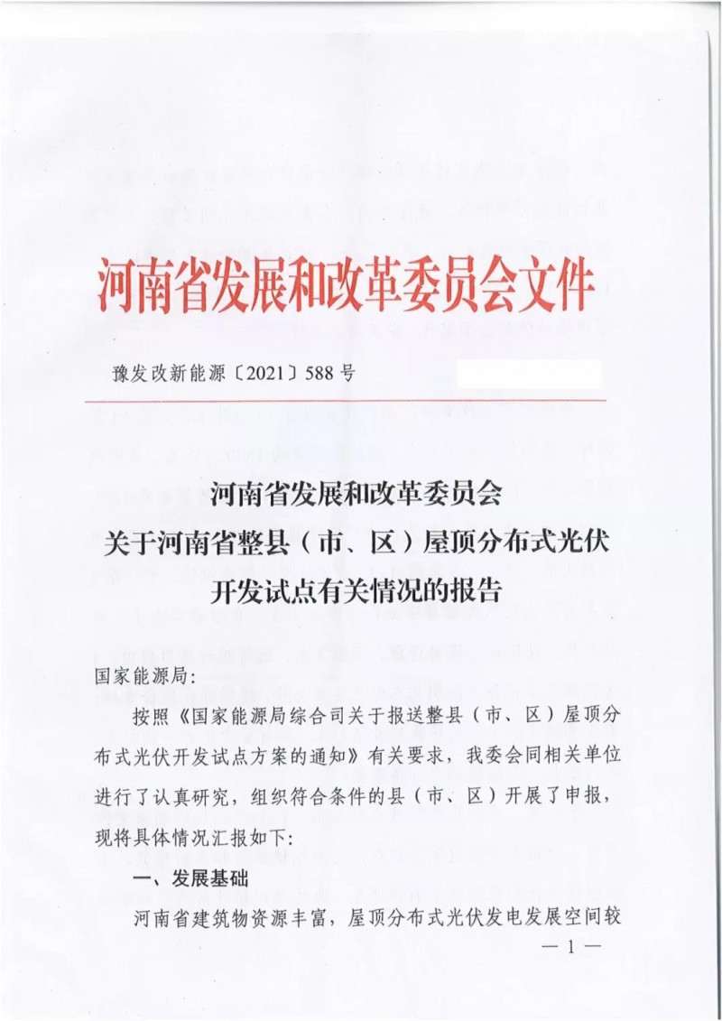 近日,河南發(fā)改委下發(fā)關(guān)于《關(guān)于河南省整縣(市、區(qū))屋頂分布式光伏開發(fā)試點有關(guān)情況的報告》,文件顯示,河南省共有66個省(市、區(qū))基本符合申報要求,擬建設(shè)規(guī)模約1500萬千瓦。文件指出,考慮到整縣(市、區(qū))開發(fā)涉及建筑物類型較多、建筑質(zhì)量參差不齊、產(chǎn)權(quán)歸屬較為復(fù)雜等特點,為保障試點建設(shè)順利開展,試點申報縣(市、區(qū))主要采用“1+1+X”建設(shè)模式整體推進。