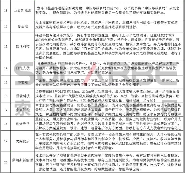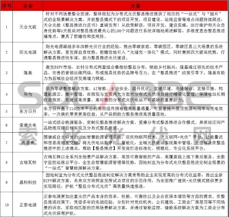 以下是由索比光伏網(wǎng)整理的25家企業(yè)就分布式光伏整縣推進(jìn)提出的解決方案,一起來(lái)看看吧 。