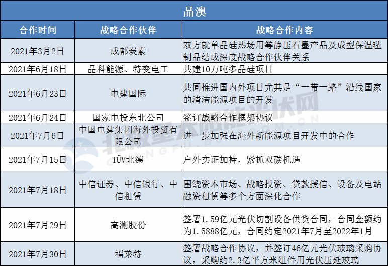2021年1-7月部分光伏企業(yè)戰(zhàn)略合作簽約如下: